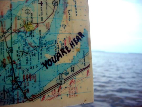 This is from our fishing expedition in the Outer Banks. Luke is making a project out of putting the video footage to a background of Alice in Chains' Man in the Box, like in The Perfect Storm. We anticipate that it will be a hit. Our fishing attendant was a toothless man named Jesse. I am betting on his having written the helpful direction on this map.